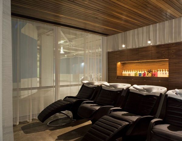 在現代美容院裝修設計中,燈光的極為重要的部分,而美容院燈光大部分是安置于天花上的。因此天花燈光設計已然成為美容院燈光的重要部分。我們通常采用三種燈光形式去實現整體的燈光效果,首先主光燈,如大廳吊頂、房內吸頂燈;二是射燈,主要用于高光點及明暗對比;三是暗藏燈帶,起到輔助及氛圍的作用。做好這三類燈光的設計,美容院的整體燈光設計便基本上能達到較為滿意的效果。